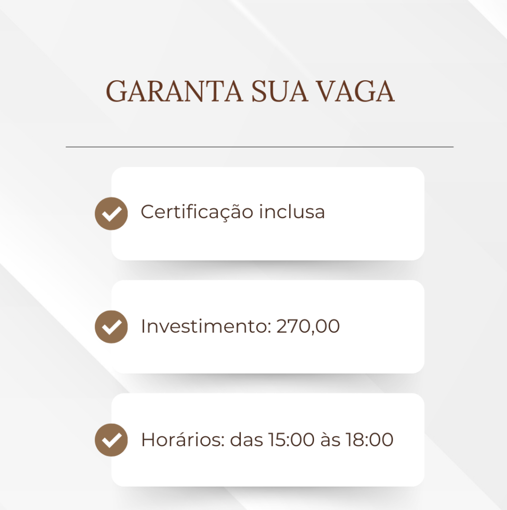 Certificação inclusa e avaliação durante as aulas para bolsas de estudos. Curso 100% prático com apresentação interna!
